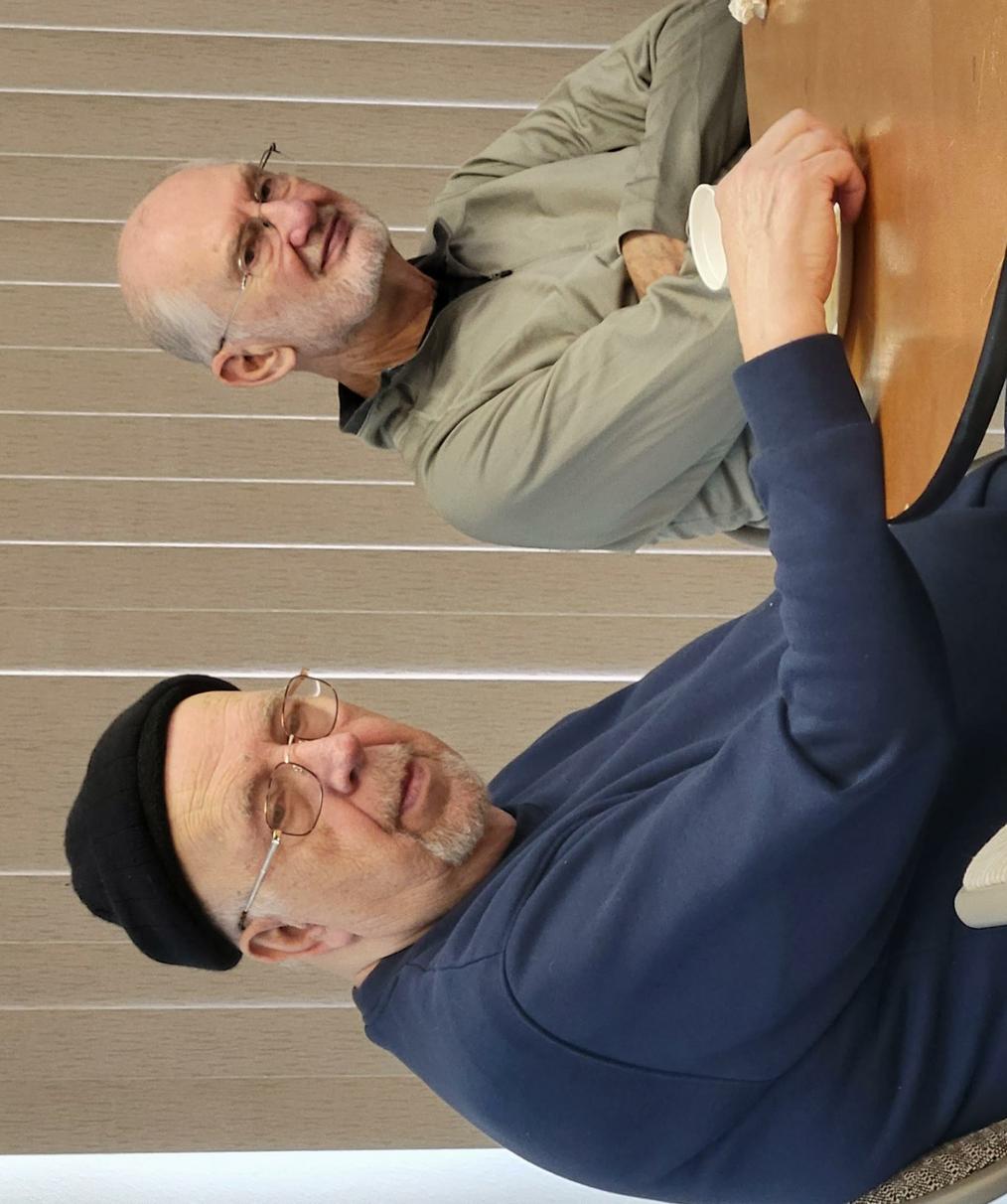 Bob, Carol, Janet and Dave facing camera at table closer to camera
